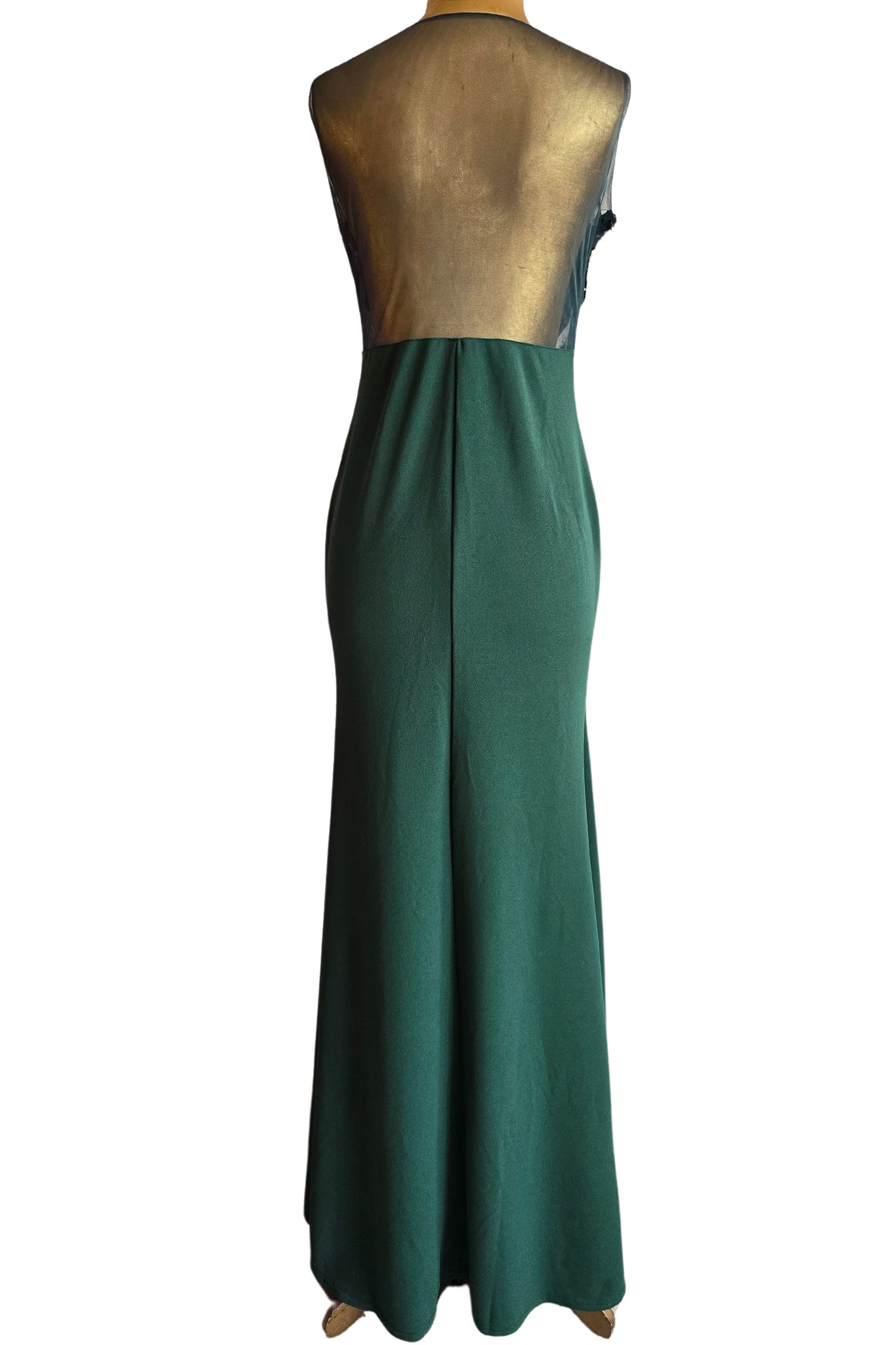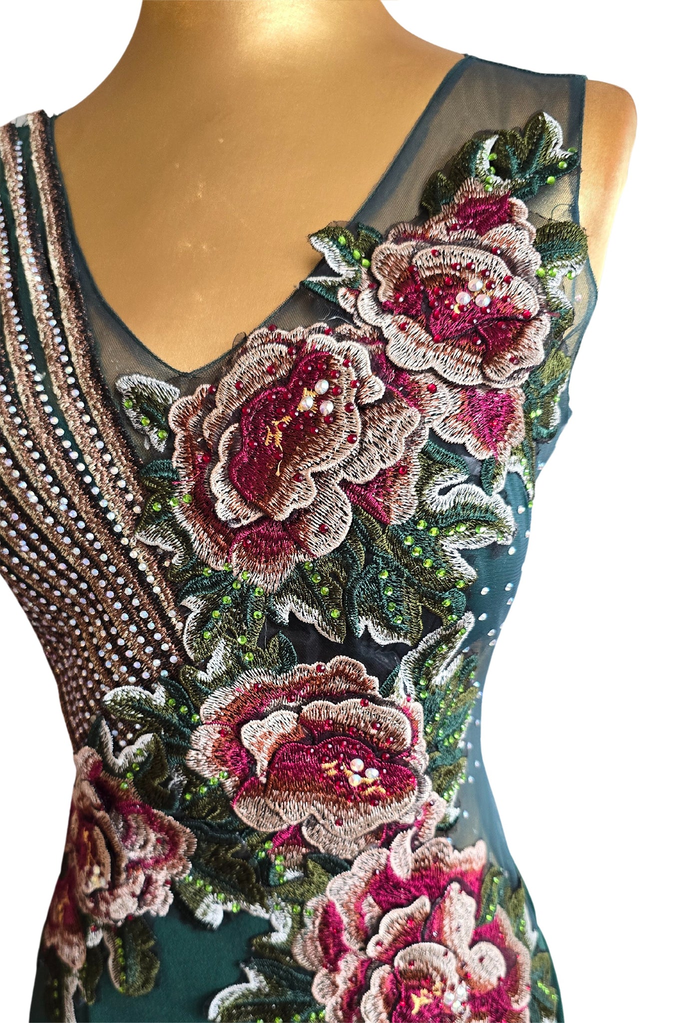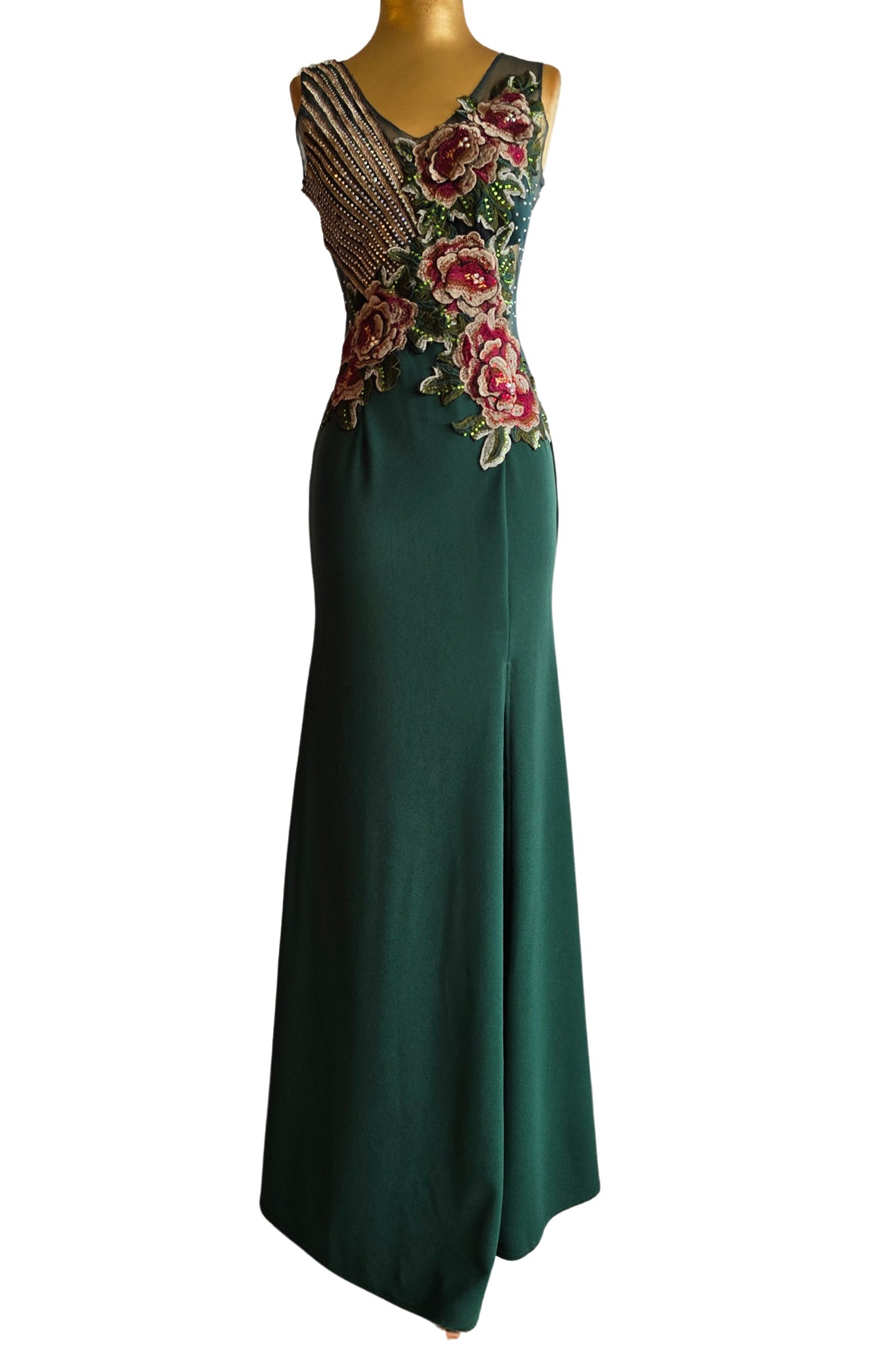 • Vestido corte sirena con aplicaciones bordadas y tul.