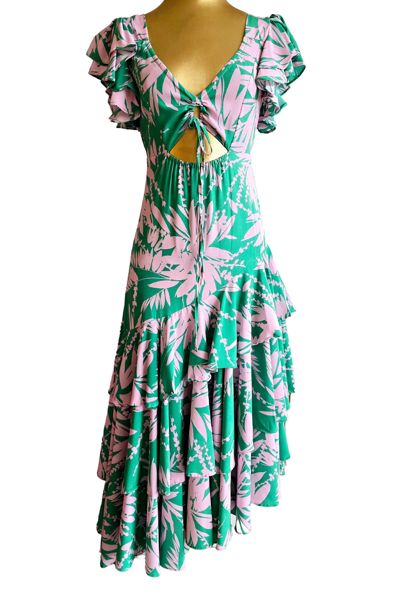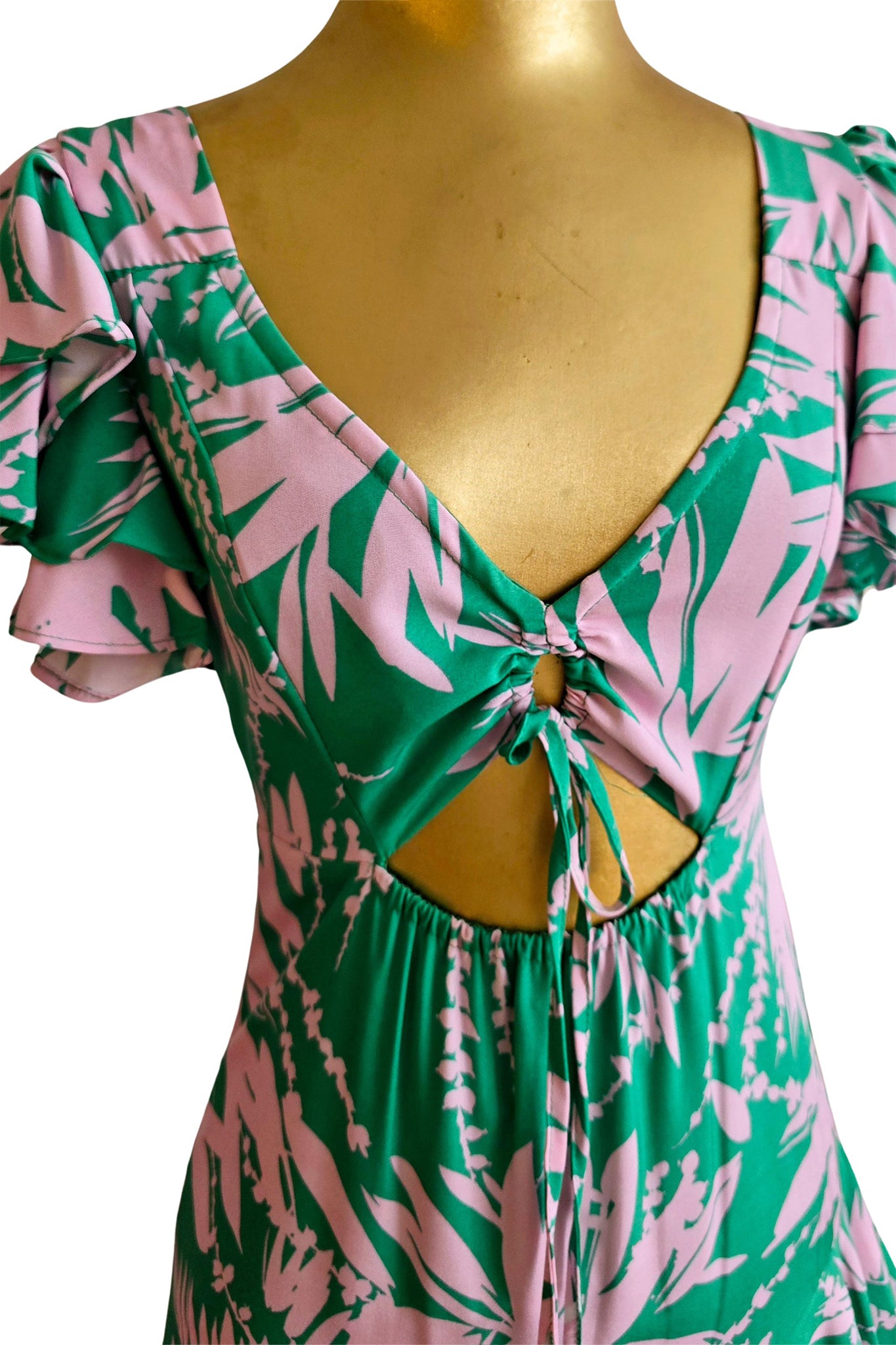 • Vestido estampado de  manga corta con detalle cut-out en el pecho