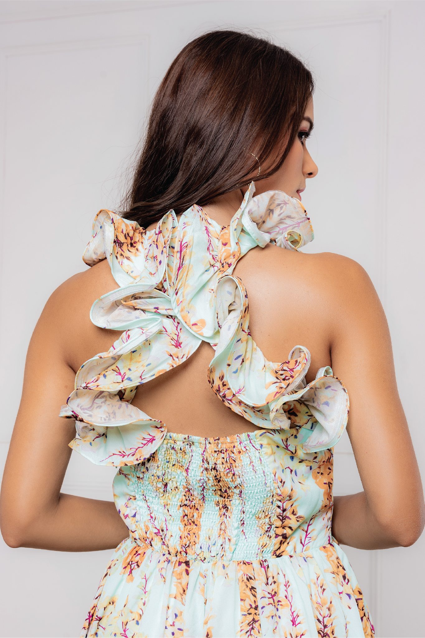 • Vestido de seda francesa estampada. Con botones en el cuello